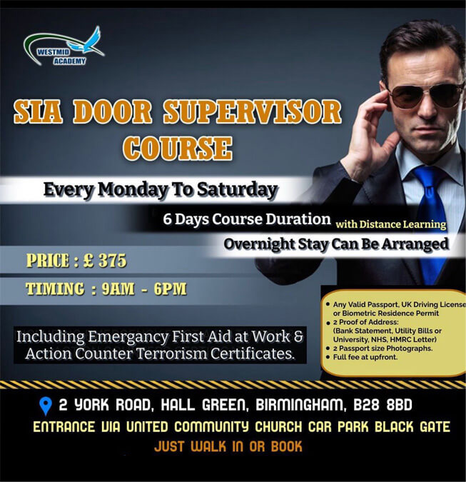 Westmid Academy Ltd offers SIA Door Supervisor courses all over the UK in all major cities and guarantee job after successful completion