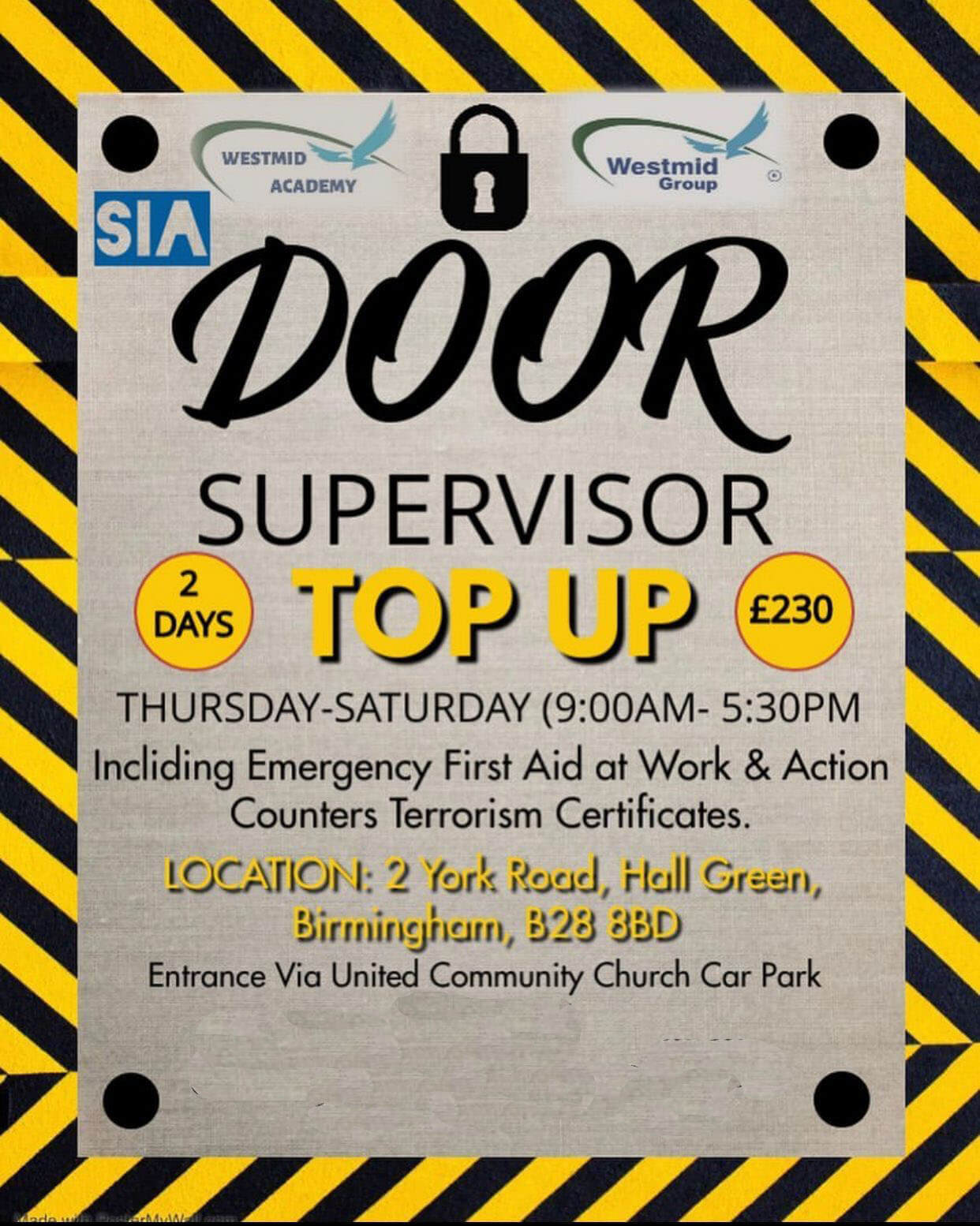 Westmid Academy Ltd offers SIA Door Supervisor courses all over the UK in all major cities and guarantee job after successful completion
